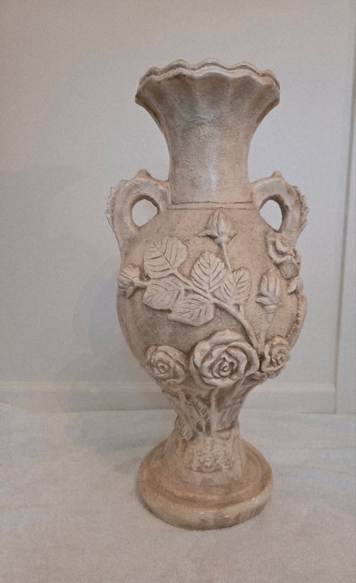 This exquisite stone vase is a timeless piece of artistry, beautifully carved with delicate floral engravings that wrap gracefully around its surface. Each flower is etched with remarkable detail, capturing the natural elegance of petals and leaves in enduring stone. The vase’s solid form and smooth finish provide a striking contrast to the soft, organic lines of the floral designs. Perfect as a standalone decorative piece or as a vessel for fresh or dried arrangements, this vase brings a sense of refined beauty, strength, and nature-inspired charm to any space.